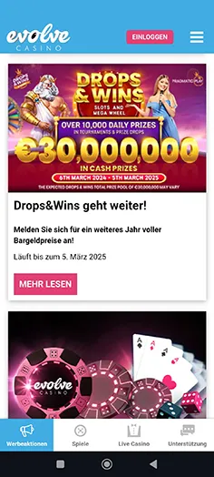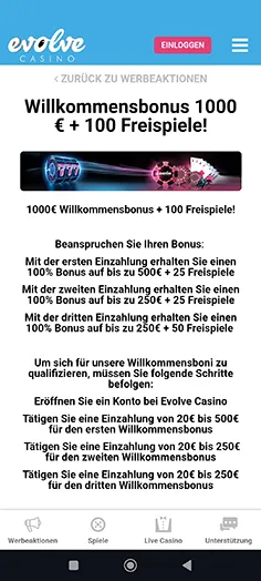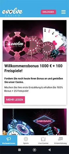 Heutzutage erkennen die Spieler Evolve als eines der besten Online-Casinos in Deutschland an. Möglich wurde dies durch zahlreiche Vorteile, die Spieler sofort nach der Registrierung erhalten.